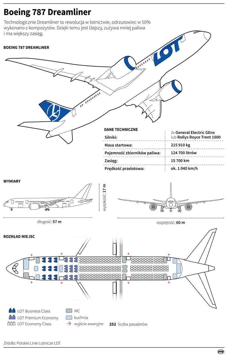 Samolot został oblatany 25 kwietnia br. Jak informuje serwis fly4free, 3 z 14 dreamlinerów polskiego przewoźnika są uziemione, a oficjalny powód to problemy z silnikami. Dzieje się tak szczególnie w odniesieniu do pierwszych silników tego typu. Problem z silnikami ma charakter globalny.